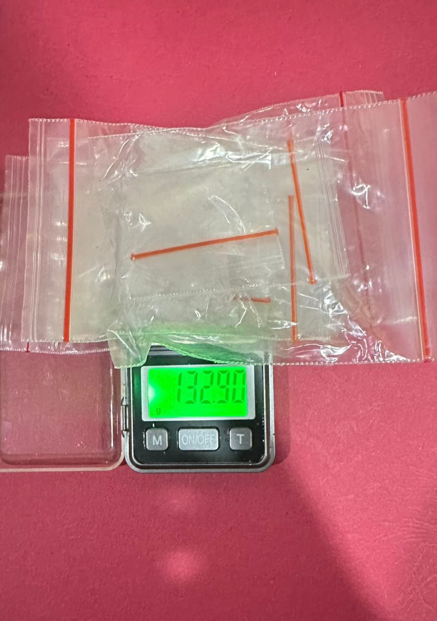 Dari hasil penggeledahan, tim menemukan sebuah plastik merek Popular warna putih yang berisi lima plastik klip diduga berisi narkotika jenis sabu dengan berat bruto 132,90 gram.