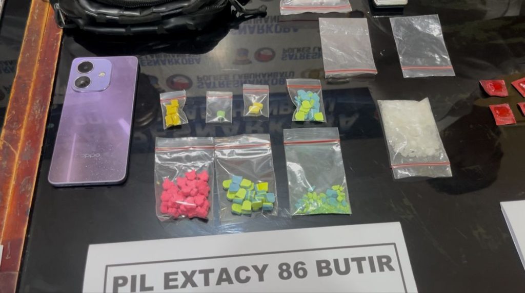 Dari tangan IS, petugas menyita sabu seberat 13,2 gram bruto, 86 butir pil ekstasi, 28 butir pil Happy-5 (Erimin 5), serta barang bukti pendukung lainnya seperti timbangan elektrik, tas selempang, dan handphone. Hasil interogasi terhadap IS mengungkap bahwa sebagian besar sabu telah dititipkan kepada rekannya berinisial TK.