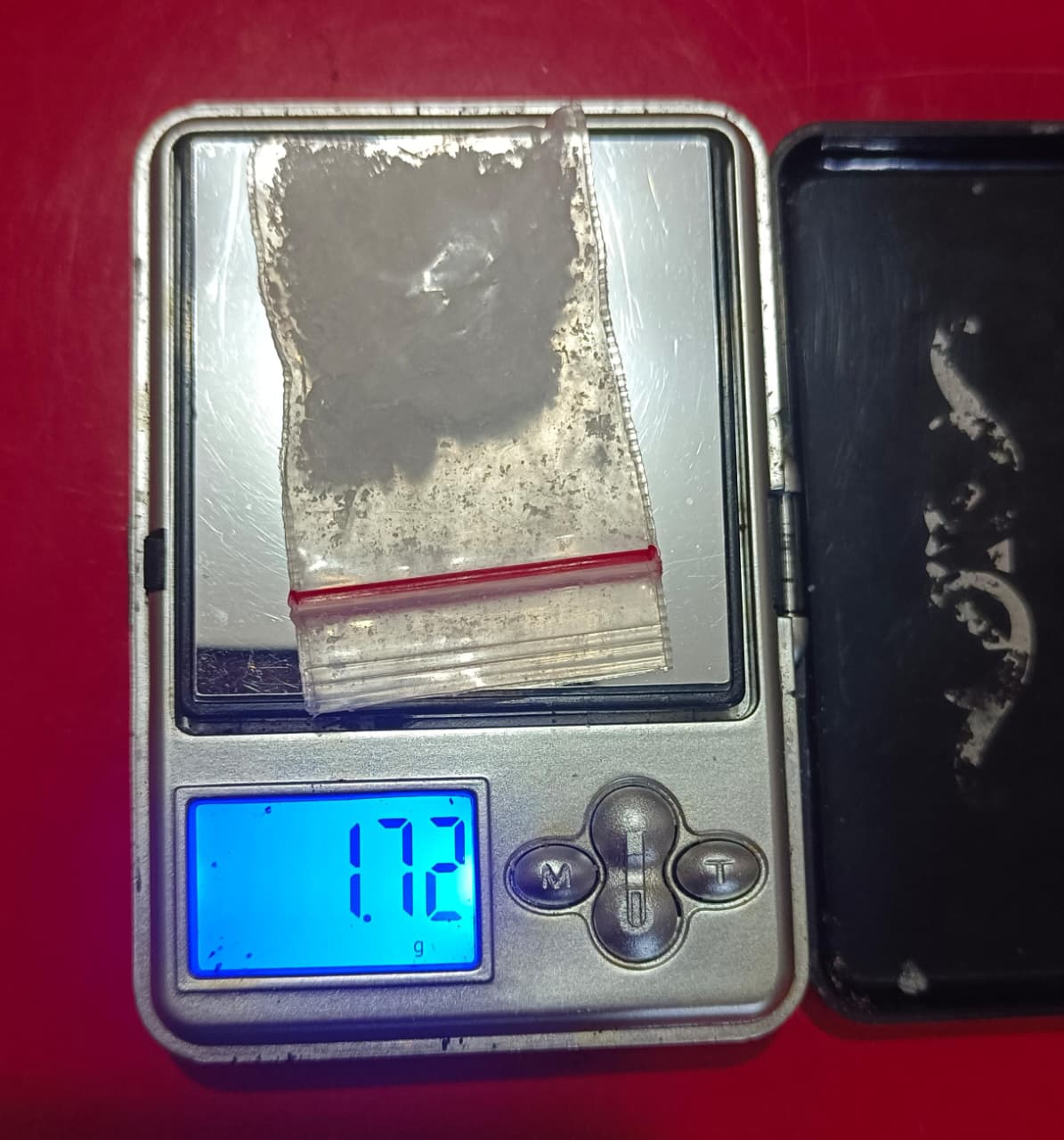 Saat dilakukan pemeriksaan di lokasi kejadian, petugas menemukan satu bungkus plastik klip transparan berisi narkotika jenis sabu dengan berat bruto 1,72 gram, yang berada di lantai tepat di bawah kaki tersangka.