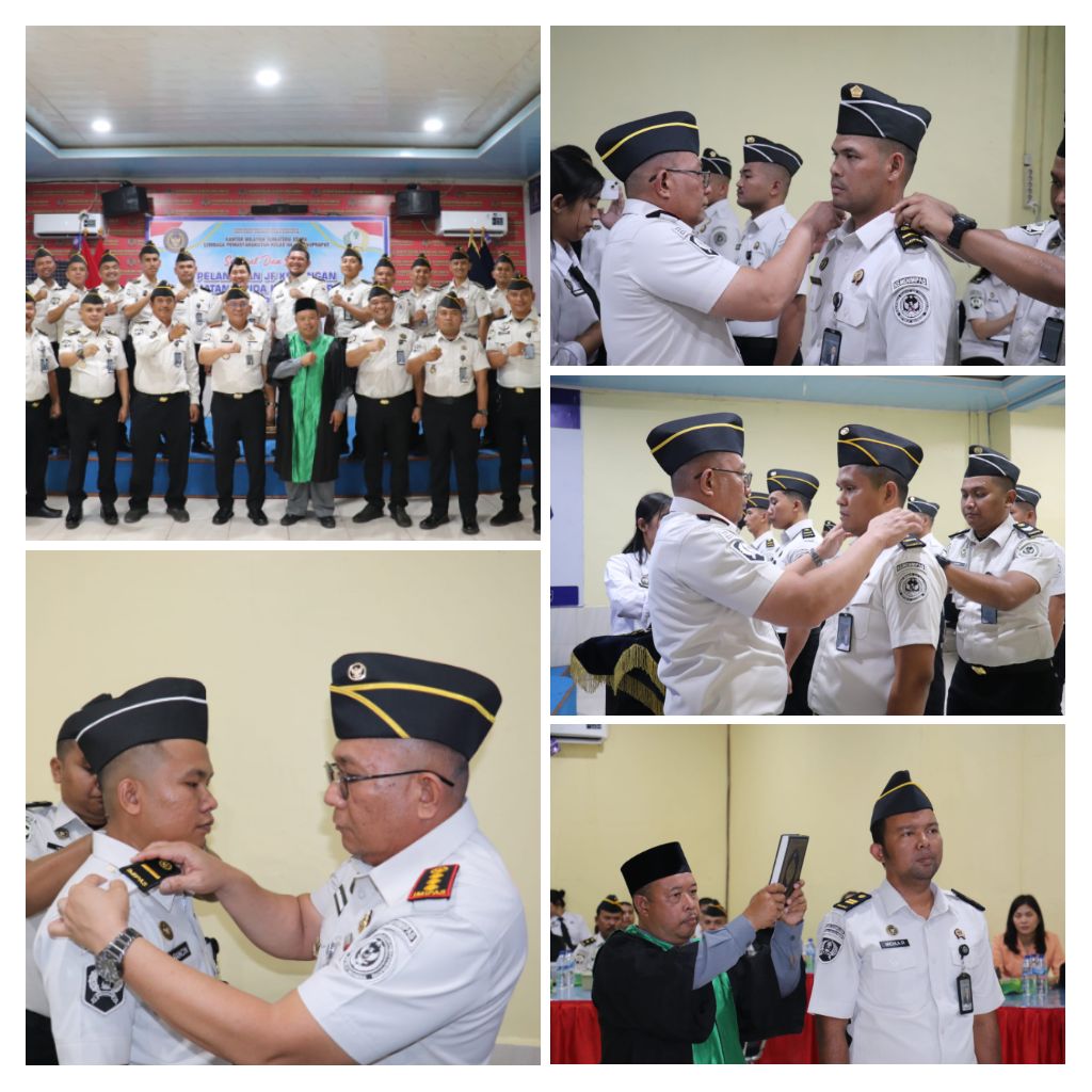 Prosesi pelantikan berlangsung khidmat dengan pengambilan sumpah jabatan sebagai bentuk komitmen moral dan profesional terhadap tugas yang diemban. Para pegawai yang menerima kenaikan pangkat juga secara simbolis disematkan tanda pangkat baru sebagai wujud apresiasi atas dedikasi dan kinerja yang telah ditunjukkan.