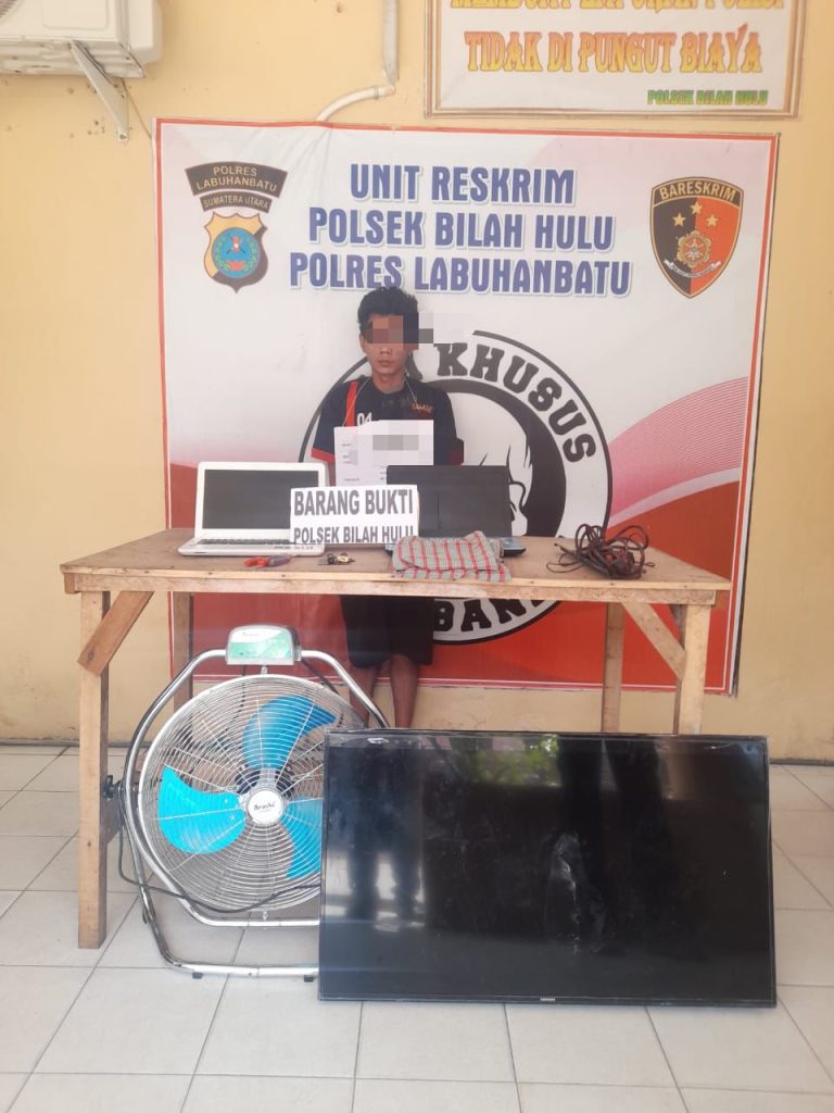 LABUHANBATU — Blusuk.online – Unit Reskrim Polsek Bilah Hulu Polres Labuhanbatu berhasil mengamankan seorang pria berinisial AI alias Godek (28), warga Dusun Lingga Tiga, Kecamatan Bilah Hulu, Kabupaten Labuhanbatu. Ia ditangkap atas kasus pencurian yang terjadi di Yayasan Pendidikan Raudatul Ulum, Desa Perbaungan, Kecamatan Bilah Hulu.