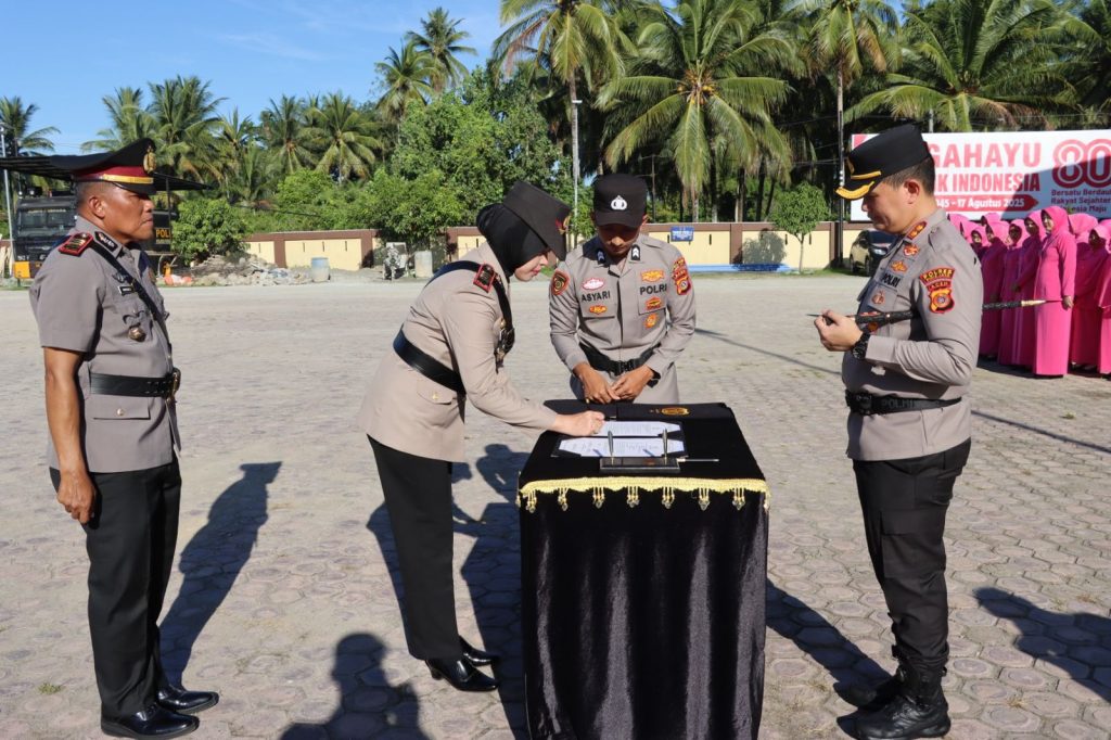 Dalam amanatnya, Kapolres menyampaikan apresiasi kepada pejabat lama atas dedikasi selama bertugas serta memberikan arahan kepada pejabat baru agar segera beradaptasi.