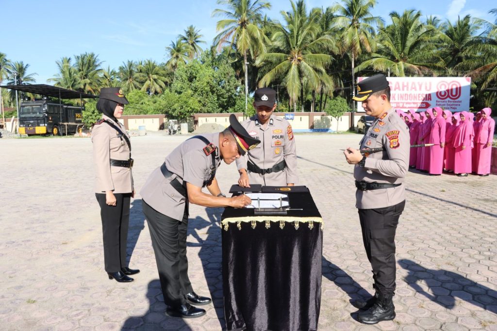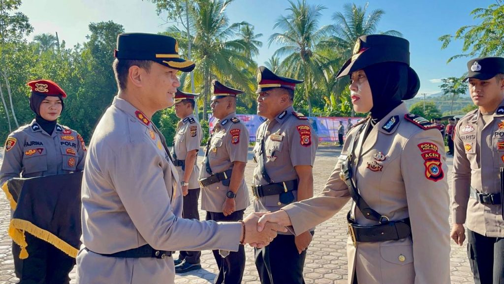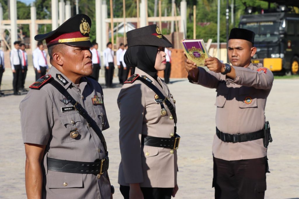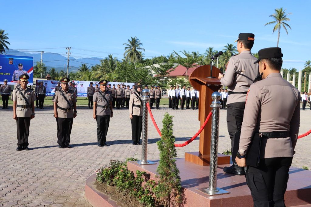 Upacara berlangsung khidmat dan turut dihadiri Ketua Bhayangkari Cabang Pidie Jaya Ny. Dewi Ahmad Faisal Pasaribu, Wakapolres Kompol Iswahyudi, S.H., CPHR., CBA, para pejabat utama, para Kapolsek jajaran, serta seluruh personel Polres Pidie Jaya.