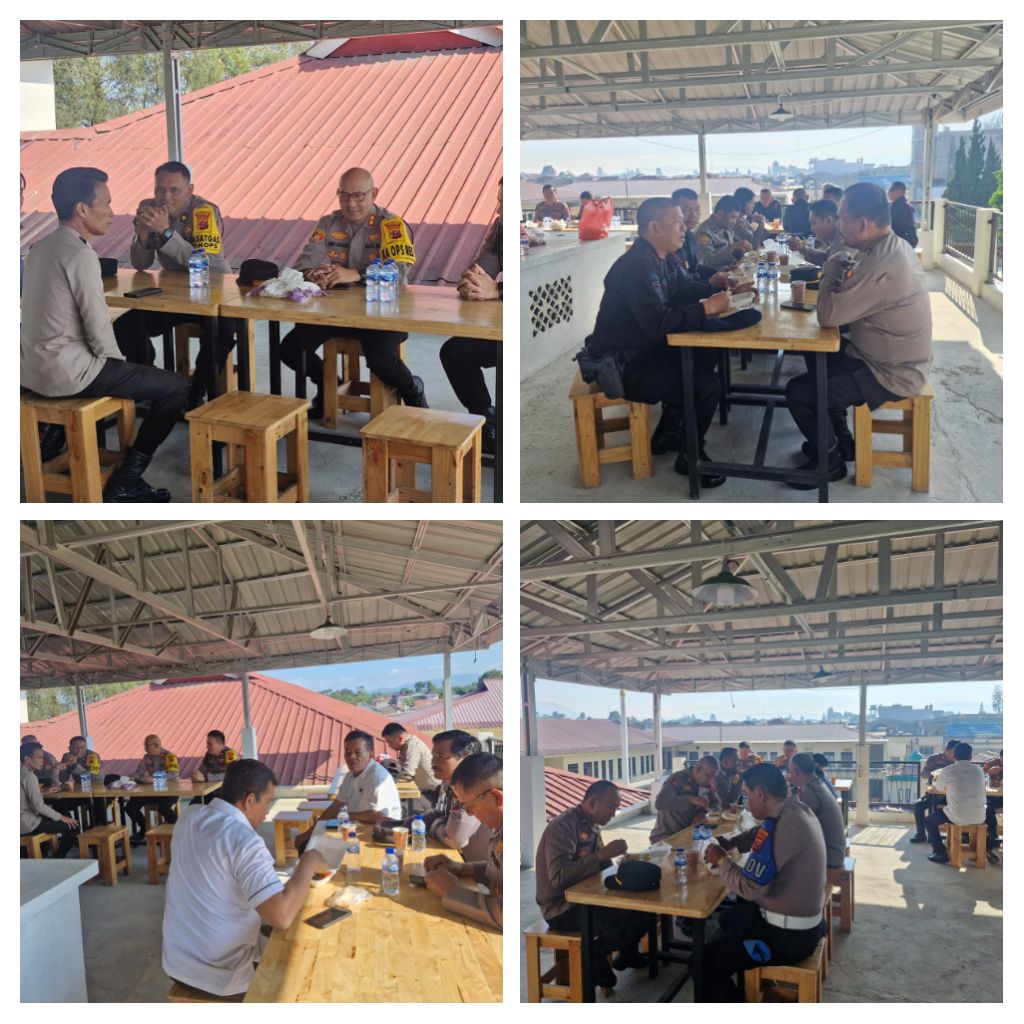 Kegiatan tersebut dihadiri langsung oleh Kapolres Tanah Karo, AKBP Pebriandi Haloho, bersama para Pejabat Utama (PJU) serta seluruh personel. Suasana hangat dan penuh kekeluargaan tampak dalam kegiatan yang diawali dengan sarapan pagi bersama.