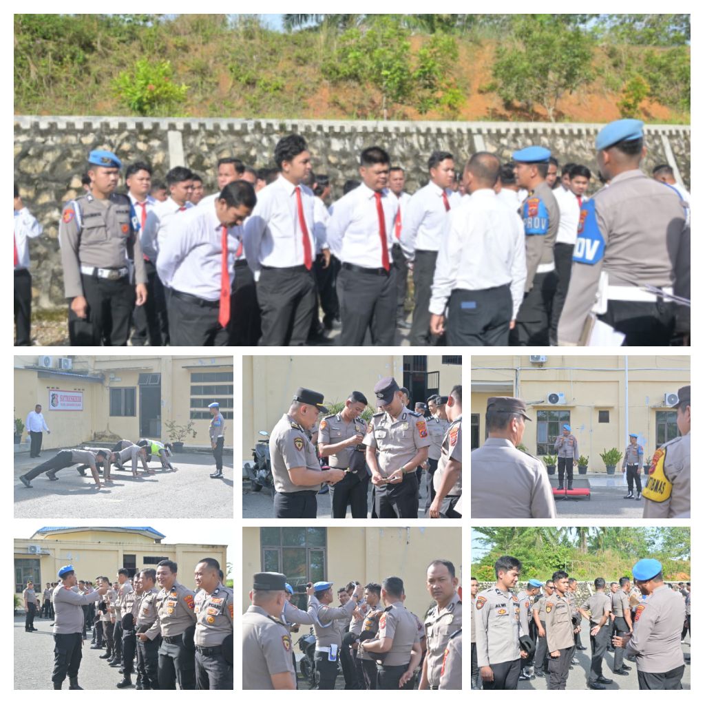Kegiatan tersebut dipimpin langsung oleh Kasipropam AKP D.P. Tarigan bersama Kanit Provos IPTU Zulkarnaen Batubara, S.H., serta diikuti personel Sipropam sebagai bagian dari upaya meningkatkan disiplin internal kepolisian.