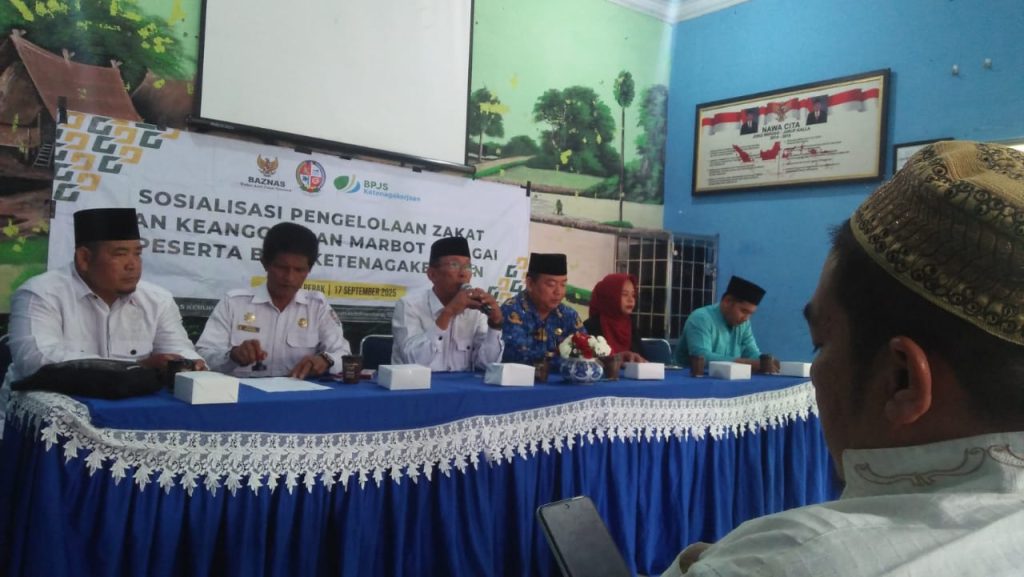 DELI SERDANG, blusuk online– Pemerintah Desa Selemak bersama BAZNAS Kabupaten Deli Serdang dan BPJS Ketenagakerjaan melaksanakan kegiatan Sosialisasi Pengelolaan Zakat dan Keanggotaan Marbot sebagai Peserta BPJS Ketenagakerjaan pada Rabu (17/9/2025), bertempat di Aula Kantor Desa Selemak, Kecamatan Hamparan Perak. Acara dimulai pukul 09.30 WIB.