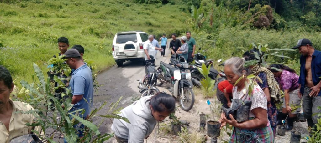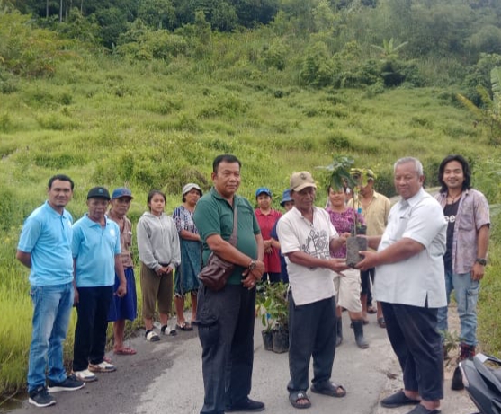 Selain penyuluhan, Prof. Abdul Rauf bersama tim turut melakukan pembagian bibit pohon produktif kepada masyarakat Desa Martelu, sekaligus melaksanakan penanaman perdana secara simbolis di Dusun Cikam.