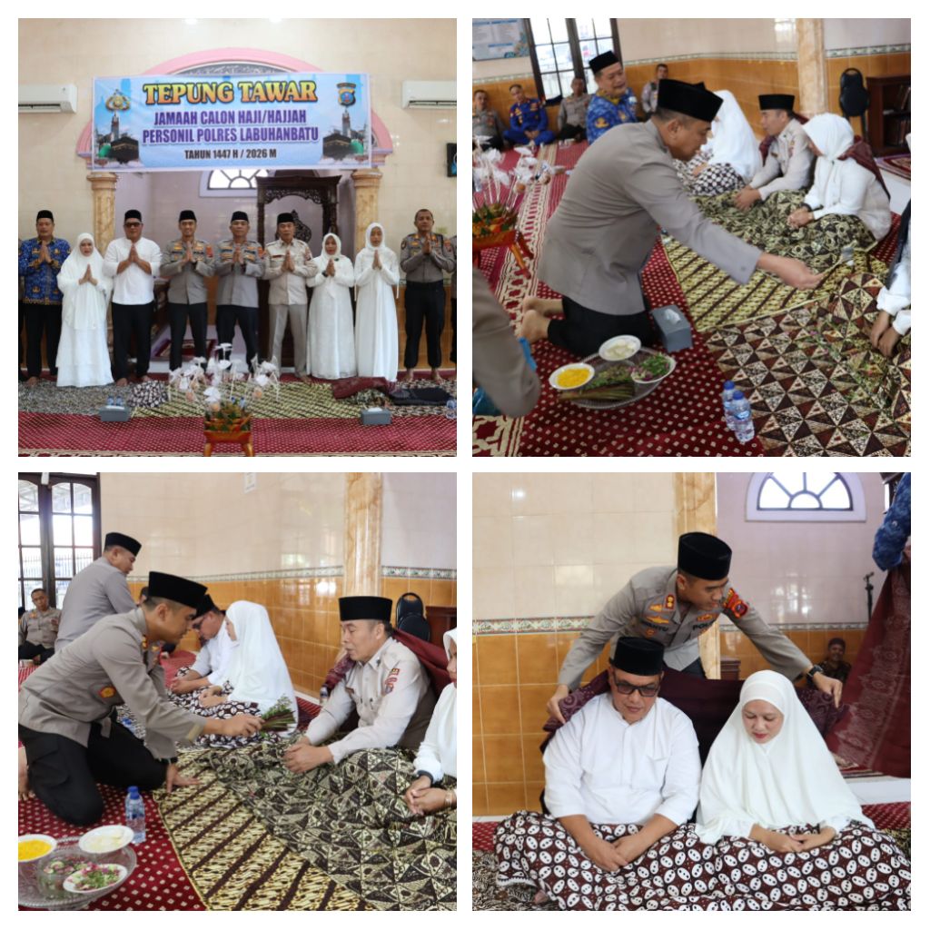 Blusuk.online – Polreslabuhanbatu – Nuansa khidmat, haru, dan penuh doa mewarnai pelaksanaan kegiatan tepung tawar bagi jamaah haji dari personel Polres Labuhanbatu yang digelar di Mesjid Al-Iman Bhayangkara Mapolres Labuhanbatu, Kamis (16/4/2026).