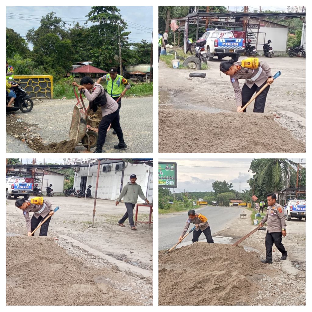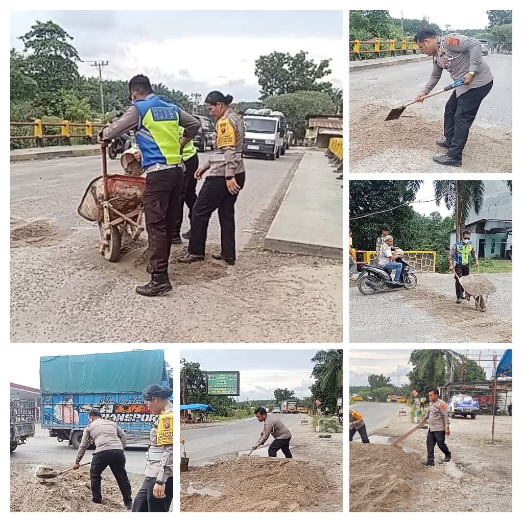 Perbaikan dilakukan oleh personel Satuan Samapta dan Satuan Lalu Lintas Polres Labuhanbatu Selatan dengan cara menimbun lubang jalan yang selama ini kerap dikeluhkan masyarakat. Kondisi jalan yang rusak tersebut sering menyebabkan kendaraan melambat bahkan berhenti, sehingga memicu kemacetan dan meningkatkan risiko kecelakaan lalu lintas.