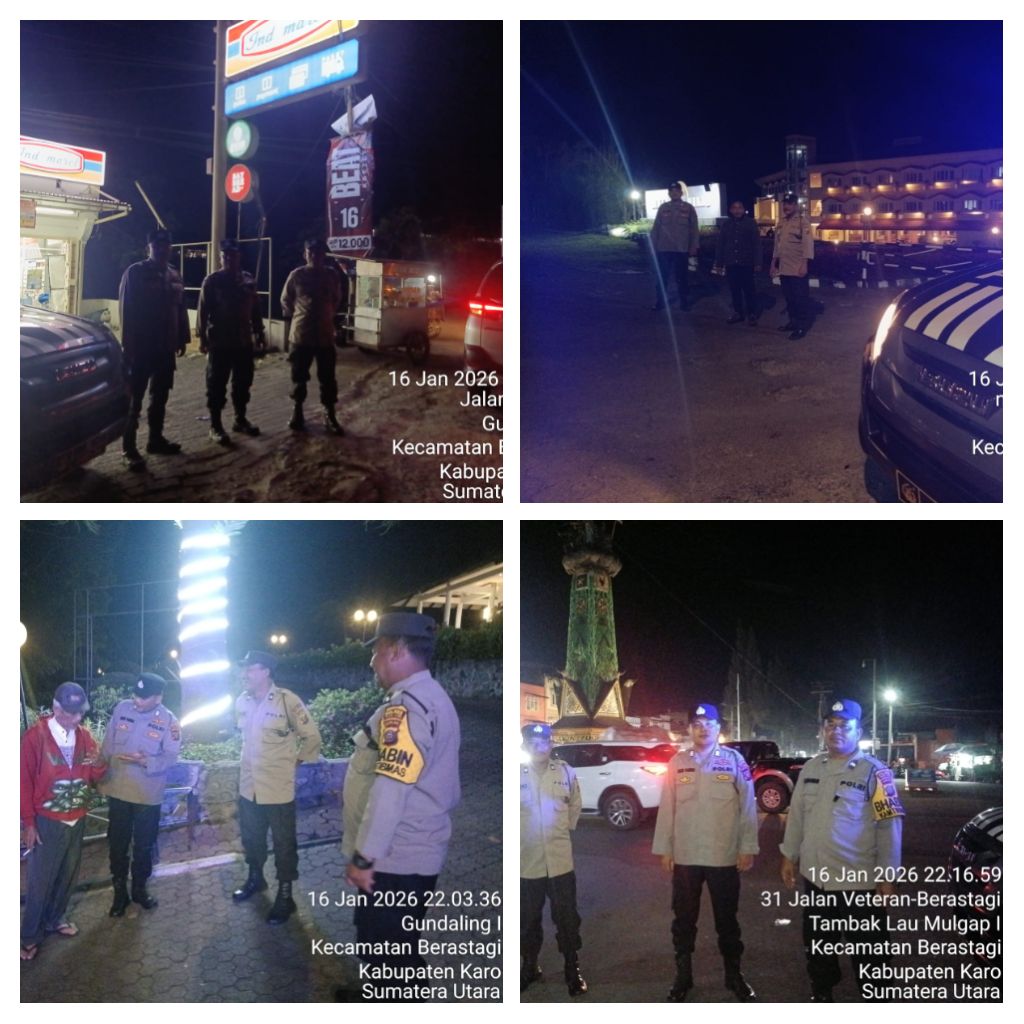 Kegiatan patroli tersebut dilaksanakan oleh personel Polsek Berastagi, yakni Aiptu Saryono, Aipda D. Tambunan, dan Bripka Remi S. Pandia, dengan mengedepankan pendekatan humanis serta kewaspadaan dalam pelaksanaan tugas di lapangan.