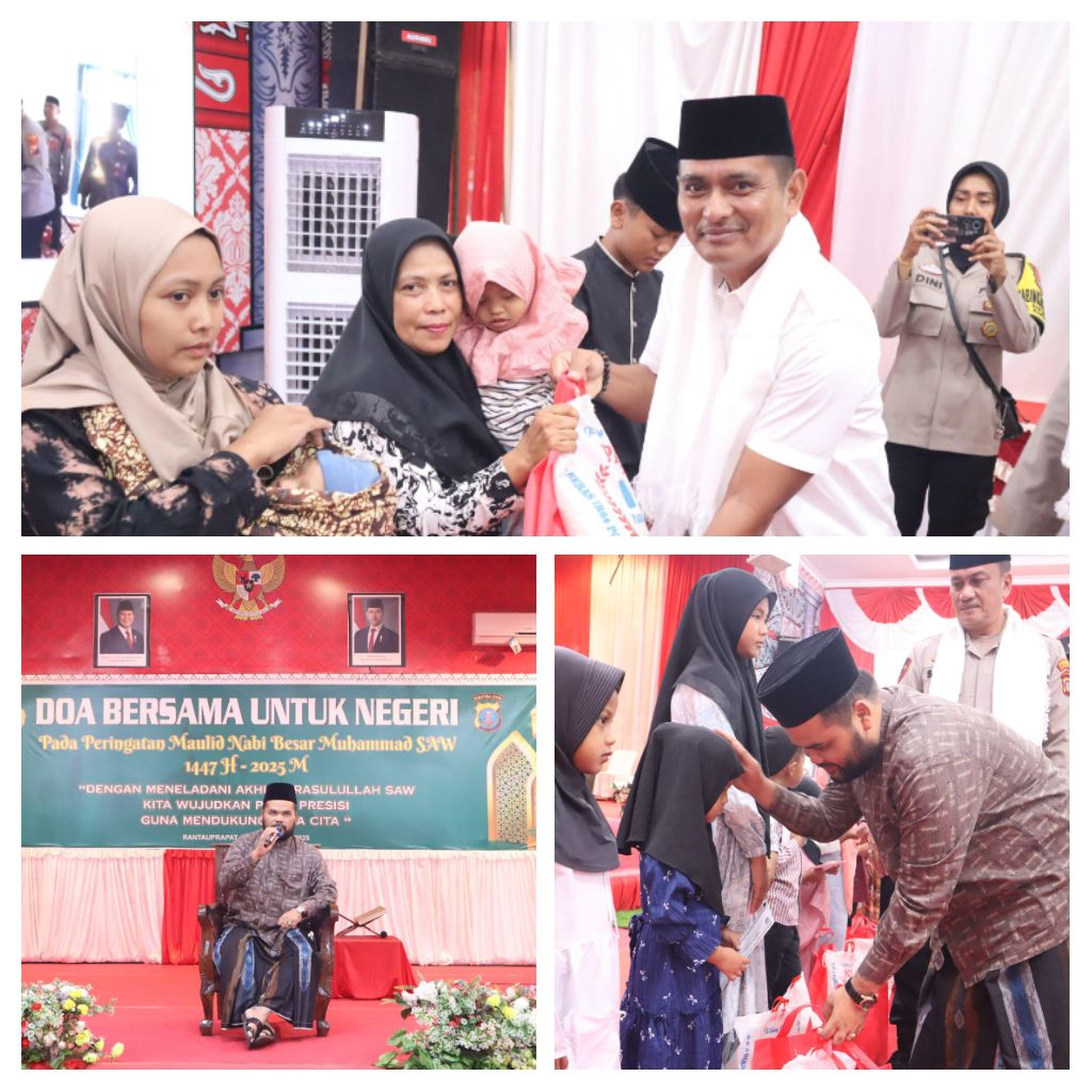 Kapolres Labuhanbatu AKBP Choky Sentosa Maliala, S.I.K., S.H., M.H., melalui Plt. Kasi Humas IPTU Arwin, S.H., menyampaikan bahwa peringatan Maulid Nabi merupakan momentum penting, bukan hanya sebagai kegiatan seremonial, tetapi juga sebagai sarana memperkuat keimanan, mempererat tali persaudaraan, serta meningkatkan semangat pengabdian kepada masyarakat.