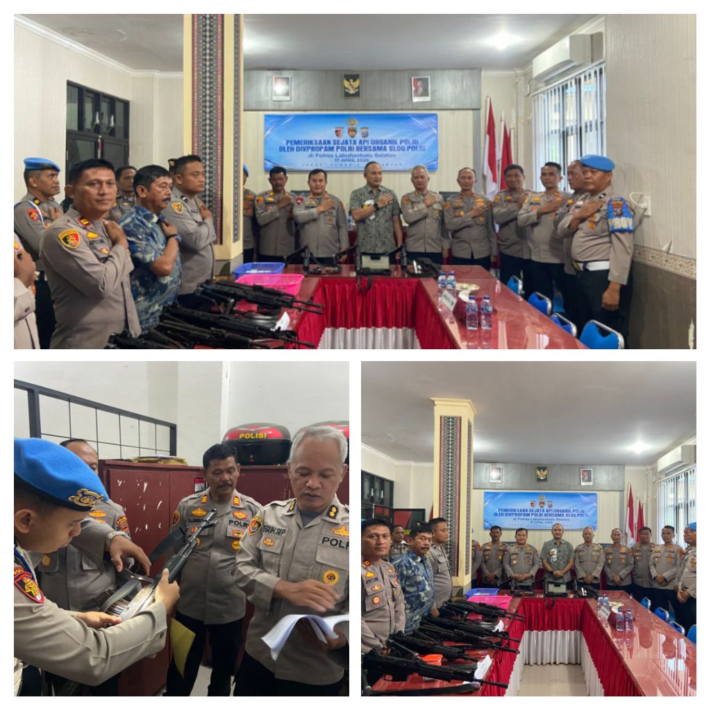 Labuhanbatu Selatan — Blusuk.online – Tim dari Mabes Polri melalui Divisi Profesi dan Pengamanan (Propam) bersama Slog Mabes Polri melaksanakan pemeriksaan senjata api (senpi) organik Polri di Aula Polres Labuhanbatu Selatan, Jumat (17/4/2026).