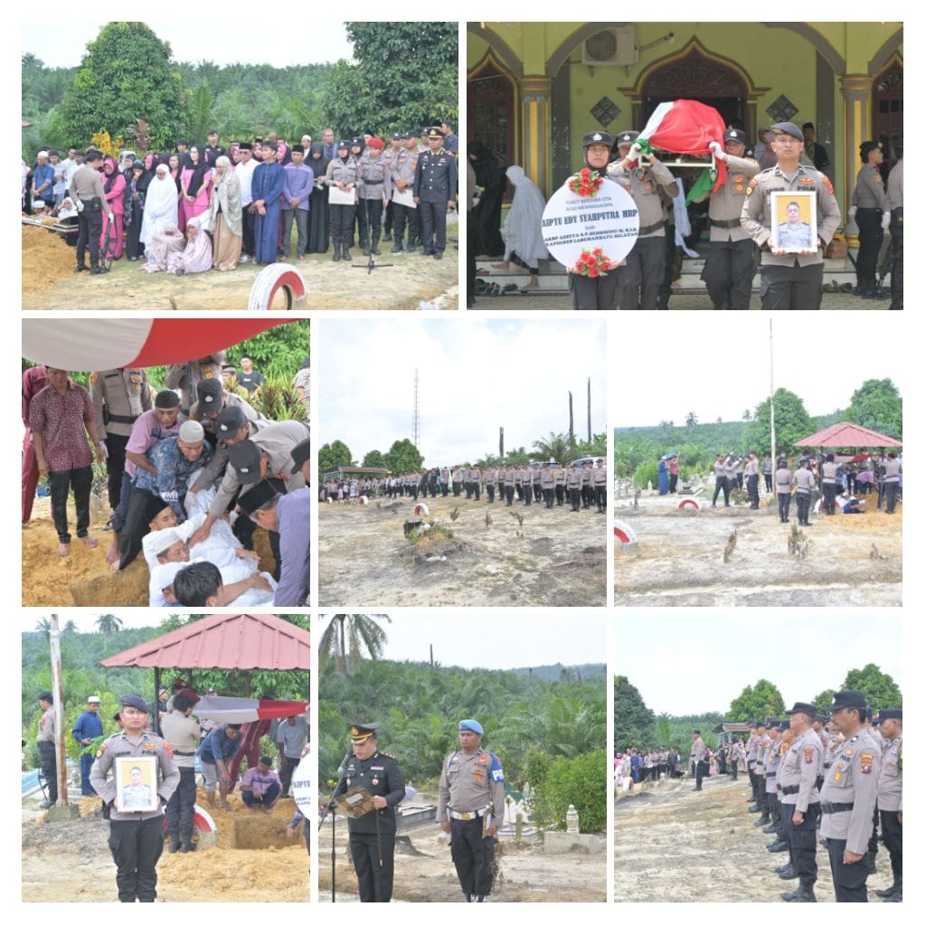 Kapolres Labuhanbatu Selatan AKBP Aditya S.P. Sembiring Muham, S.I.K., bertindak sebagai Inspektur Upacara dan memimpin langsung jalannya prosesi pemakaman. Turut hadir Ketua Bhayangkari Cabang Labuhanbatu Selatan Ny. Olivia Aditya beserta pengurus, para pejabat utama Polres, Kapolsek Torgamba AKP Syamsul Adhar, S.H., M.H., para perwira, personel Polres dan Polsek jajaran, serta keluarga dan para pelayat.