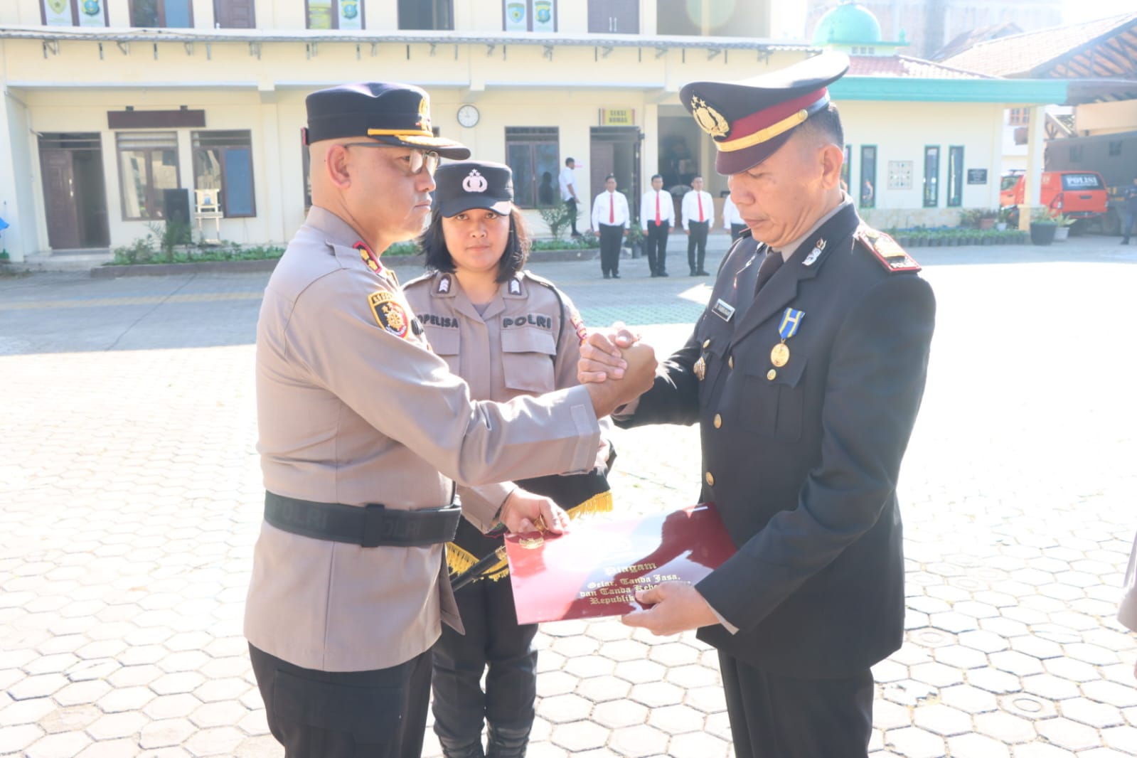 Dalam upacara tersebut dibacakan Keputusan Kapolri tentang Penganugerahan Tanda Kehormatan Pengabdian kepada personel Polri yang telah menunjukkan dedikasi, loyalitas, dan pengabdian tanpa cacat selama masa dinas 8 tahun, 16 tahun, dan 24 tahun. Sebanyak 12 personel menerima Lencana Pengabdian yang disematkan langsung sebagai bentuk penghargaan atas kesetiaan dan integritas mereka dalam menjalankan tugas.