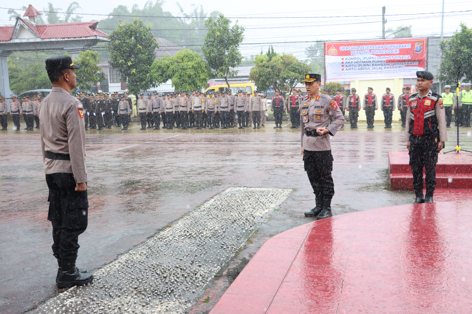 Dalam Amanatnya, Kapolres Dairi Menyampaikan Penghargaan Setinggi-tingginya atas Dedikasi dan Pengabdian Para Personel Selama Bertugas di Polri, Khususnya di Polres Dairi.