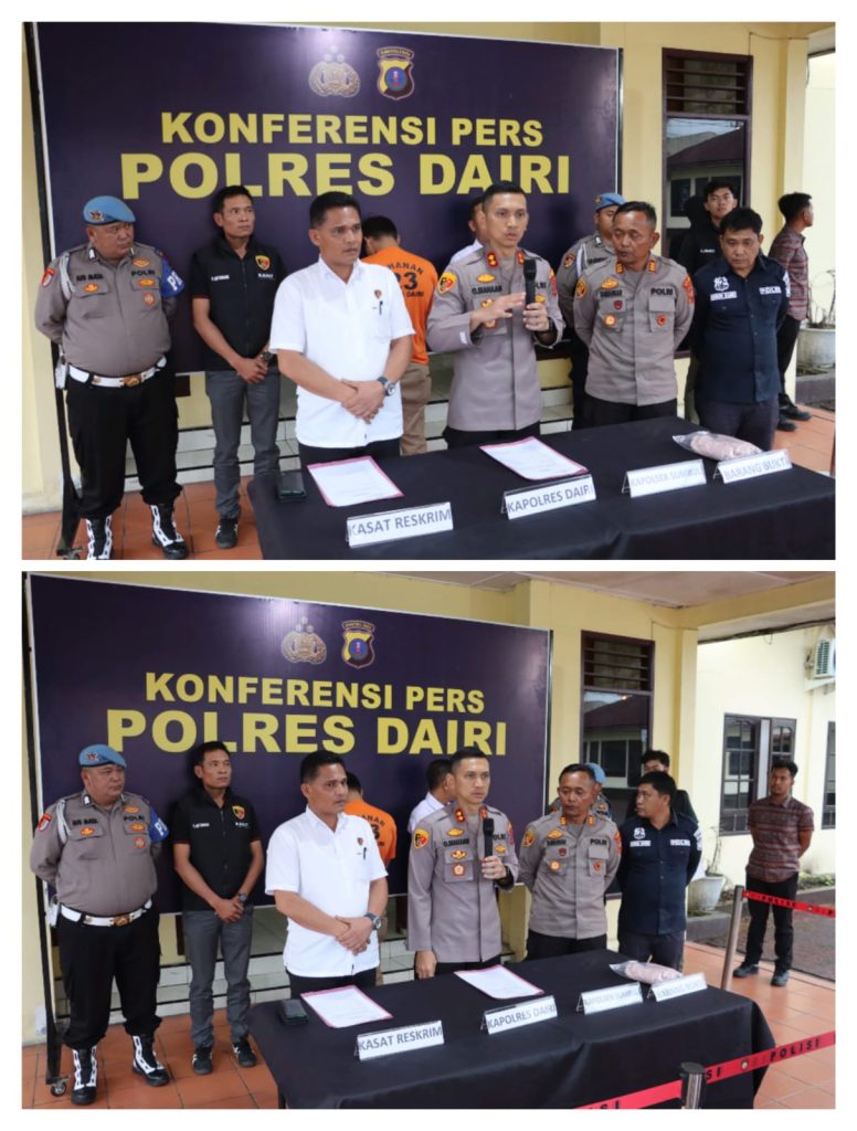 Kapolres Dairi, AKBP Otniel Siahaan, S.I.K., M.I.K dalam Konferensi Pers mengatakan, Tersangka yang Diamankan Berinisial DL (22) Warga Desa Pengambatan, Kecamatan Merek, Kabupaten Tanah Karo.