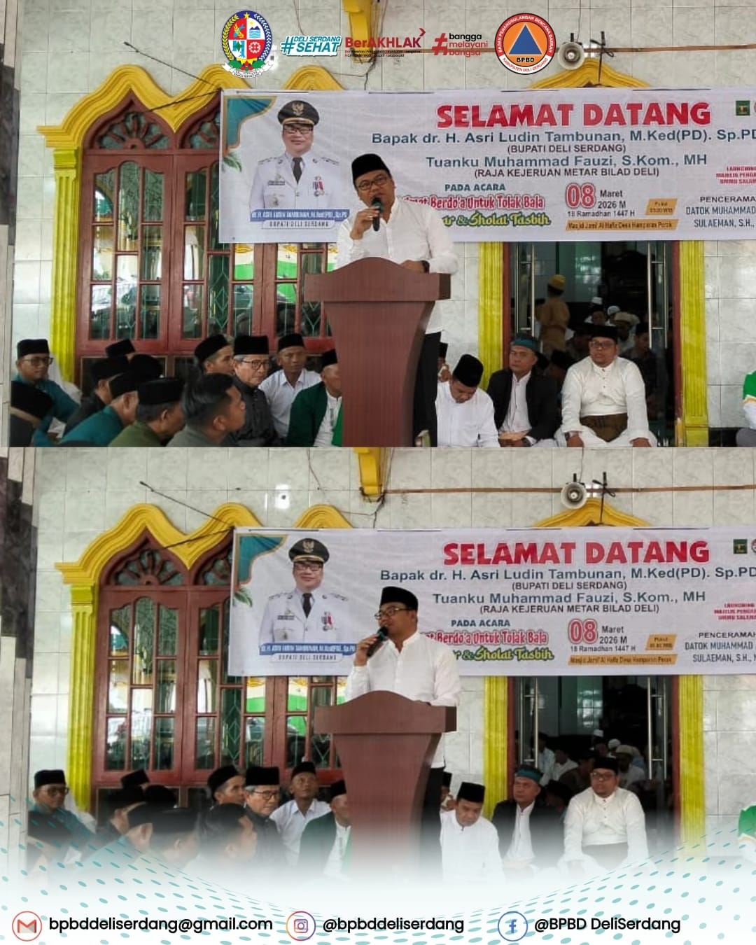 Peringatan Nuzulul Qur’an yang digelar di tengah suasana Ramadhan itu dihadiri oleh berbagai unsur pemerintah daerah dan tokoh masyarakat. Turut hadir Anggota DPRD Kabupaten Deli Serdang, Adami, Asisten Pemerintahan dan Kesejahteraan Rakyat Setdakab Deli Serdang, Zainal Abidin Hutagalung, serta Kepala Badan Penanggulangan Bencana Daerah (BPBD) Kabupaten Deli Serdang, Mukti Ali Harahap.